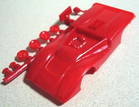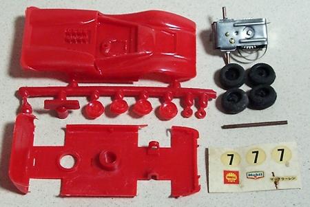 M6A、即ち’67年のカンナムグランプリ出場時とするなら、先に言ったようにCかDのゼッケンにして欲しかった所ですが、カンナム以外で実車がFを付けた事実の有無については良く分からない為、このナンバーを必ずしも否定するものではありません。何よりその事実すら、王国が認識したのがこのキット発売から30年以上経ってからなのですから、それは当時の子供達にとって、微塵も短所で無かった事だけは確かです。 |