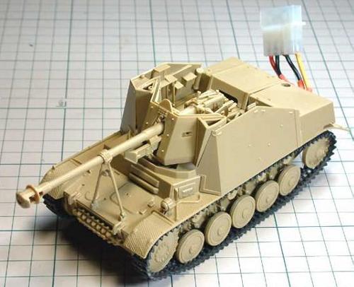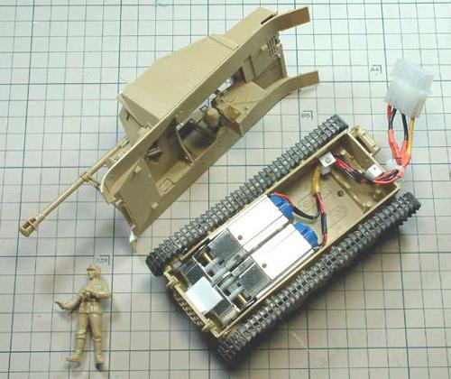 ![]() 1/35とはいえ、かなり小型の部類に入るマーダーIIです。汎用ギヤですらスペース的にギリギリ。モーターへのリード線のハンダ付けを上手くやらないと、そこがボディと干渉することになります。 |
