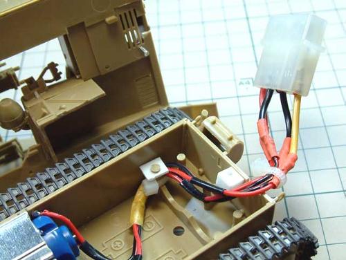 ![]() 配線の取り回しです。リモコンケーブルは車体の一部を切り欠いて出しており、展示の時はコネクタは本体へ収納出来るようになっています。 そのコネクターはパソコンの電源用のもの。車体に比べてごついですが、ジャンクでたくさん入手してしまったのと、昨年作ったコントローラーがこのコネクタ仕様になっていたので使いました・・・・(^^; |