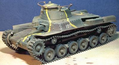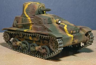 ![]() 94式軽装甲車。キャタピラはモデルカステンのコムソモレーツ用(本当はパターンが違う)を流用しています。一部タミヤ97式中戦車のパーツも使っています。 |