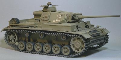 3号戦車L型。グンゼのキットをリンクスの改造パーツを使ってL型にしたもの。「結構苦労したのに、この後タミヤから同じL型がリリースされてがっかりですよー。」とは矢辺さんの言葉。 |