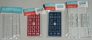 左から順番に透明部品、赤色透明部品、青色透明部品、緑色透明部品(青と緑は同じビニール袋に同梱)、乳白色部品からなる豪華絢爛前代未聞の宝石群。各色は透明=ダイア、赤=ルビー、青=サファイア、緑=エメラルド、白=真珠で、(部品点数ではなく「粒」として見分けられる数として)其々ダイアモンド208個、ルビー、サファイア、エメラルド各23個(この3種は同一のモールドとして成形)、真珠489個という膨大な数となり、他に例の見ないラグジュアリーな部品構成を誇ります。 キット全景で紹介したタグにある説明と各宝石の数が違うのは、赤パーツ青パーツの中に各4個ずつ「赤ダイア」「青ダイア」なるものが一緒にモールドされている事、大粒のルビー、サファイア、エメラルドの回りを飾る小粒の装飾ダイアが台座となるメッキ部品の丸いモールドで省略されている事、真珠のモールドの大きさが一定で必ずしも実物の王冠の真珠の大きさと一致していない事、赤青緑のパーツが同じモールドで共有されていて未使用部品がある事、などがその理由です。 | |