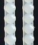 各宝石部品のアップです。直径4ミリのダイアモンドのピントが若干甘いのは勘弁していただくとして、それでもきちんとカットが施されているのが分かると思います。 その隣のルビー、サファイア、エメラルドは前述のように同一モールドの部品です。写真はそのうちの最も大きい長径7.5ミリのものですが、プラモデルのスチロール樹脂とは思えない妖しくも華麗な光をたたえていますね。 最後は右端の真珠パーツです。真珠は王冠上ではベルト状の装飾として使われている為に組み立ての便宜を図って最初から帯状に成形されていますが、この質感にもメーカーの意気込みが感じられます。これ以外にもっと大粒のものもありますが、それは光の透過が弱くなる分、より一層の真珠の質感が出ています。 | |