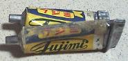キットに付いているメッキ部品用接着剤2本。メッキ部品を使ったプラモデルは数多くありましたが、普通の接着剤で接着するとメッキ部分の表面だけがくっ付くのみで内部に浸透しない為、完成後にぽろぽろと部品が剥離してしまう為、メッキ部品は接着面を一旦剥がす必要がありますが、このキットの本体は全てメッキ部品であり、且つ接着する部品の殆どが極小さなものでもあり、フジミはこのキットに専用の接着剤を同梱したのです。この辺にもメーカーの真摯な態度が感じられます。 同じ時期に作られた同じチューブ入りの接着剤ですが、一方は完全に固化しているもののもう一方は十分に粘性を保っており、チューブのおしりから少量搾り出した所何とか実用に耐えそうな気配です。僅かな機密性の違いからこんなに差が出るものなのですね。 余談ですが、完全に固まった方のチューブの表面には何やら得たいの知れないカビとも緑青とも違う錆状の物質が吹いています。メッキ用の浸透性の強い接着剤特有の現象なのでしょうか。ちょっとミステリーです。 |