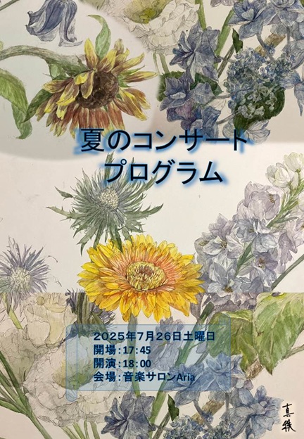 ■ 2025年夏のコンサート 2025年7月26日(土)音楽サロンAria![]() ![]() ![]() |